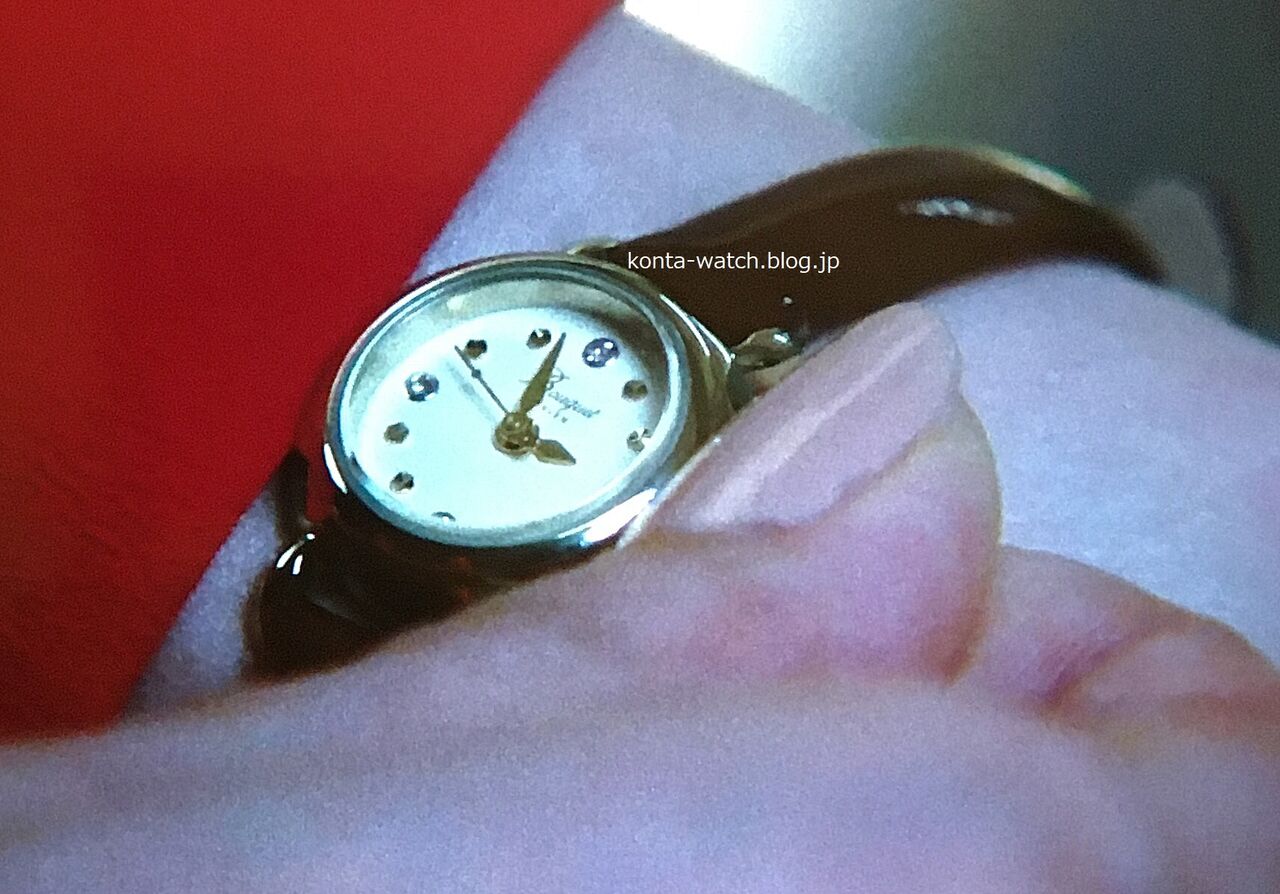 文字盤に4つのスワロフスキーをあしらい、ベルトは本革エナメル仕様。可愛らしさとエレガントさを兼ね備えたデザインです。
