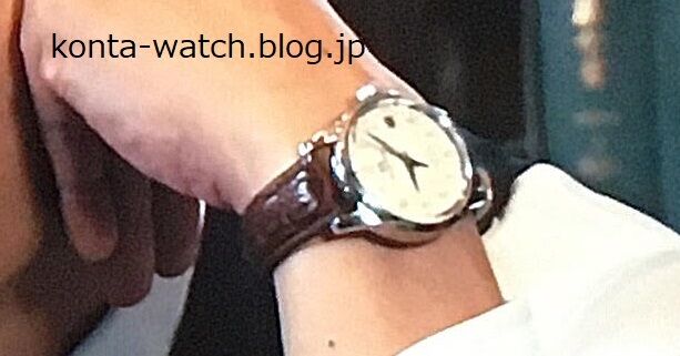 柔らかな色彩のダイヤルと、視認性の高いアラビア数字を採用しており、こげ茶色のレザーストラップと調和し、上品でクラシックなスタイルを演出しています。