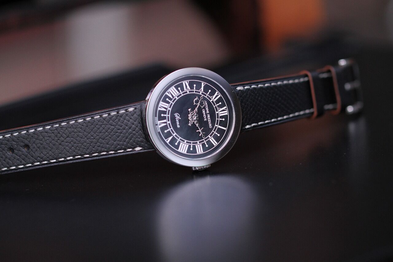 この時計は、アントワーヌ・プレジウソがイタリアのシエナを訪れた際に、「世界一美しい広場」と称されるカンポ広場の時計塔に魅せられて創作されたものです。中世を想わせる飾り針とマザーオブパールのダイヤルが特徴的です。